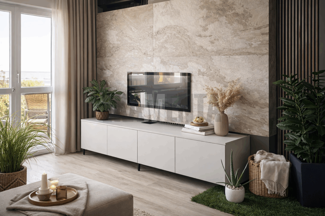 Kamenná dyha Autumn Cream v smotanovo-hnedastej farbe ponúka jedinečný, prírodný vzhľad, ktorý kombinuje jemnosť farieb s luxusom prírodného kameňa. Tento obklad je flexibilný, ľahký a vodoodolný, vďaka čomu je ideálny na použitie ako v interiéri, tak aj v exteriéri.