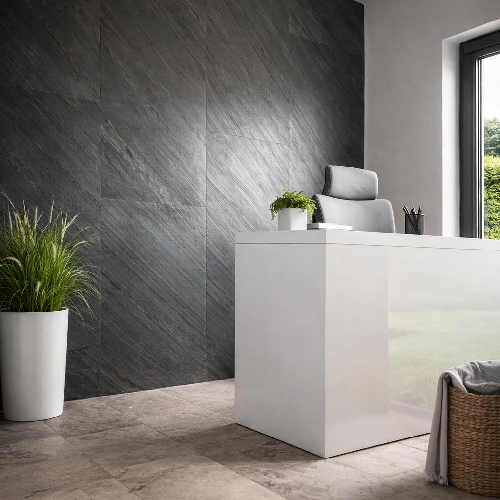 Kamenná dyha Ocean Black prináša moderný a elegantný vzhľad v tmavo sivých odtieňoch s jemnými prúžkami. Tento produkt je ideálny pre vytvorenie sofistikovaných interiérových aj exteriérových projektov, kde požadujete kombináciu estetiky a trvácnosti prírodného kameňa.